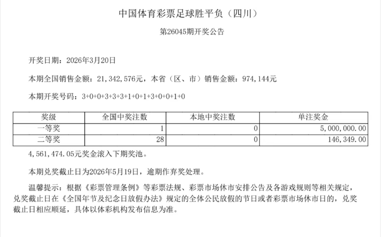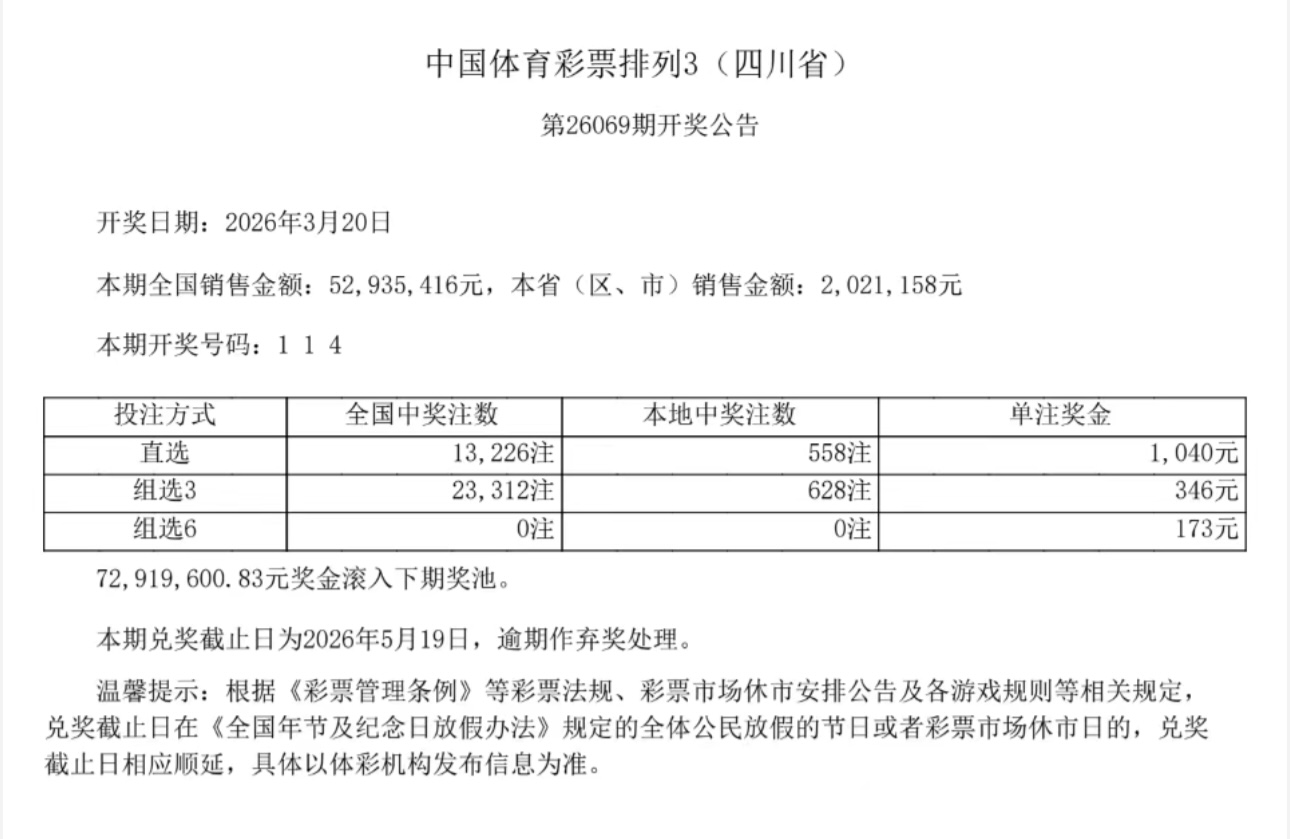 好牛配资 中国体育彩票3月20日开奖结果
